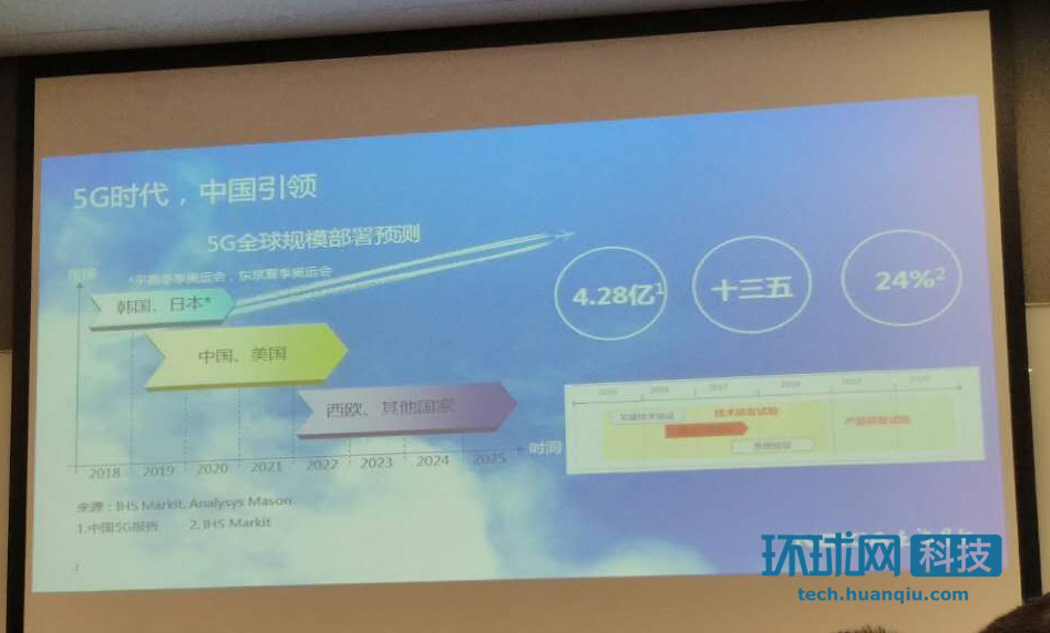 他認為,其它國家,譬如西歐、亞太等地區面對5G,還是相對滯後的。從中國5G報告中可以看出,2025年將會有4.28億5G用户。在“十三五”中,已經基本確定5G是國家戰略中的重要部分,中國2020年5G方向的就業人數到會超過950萬。