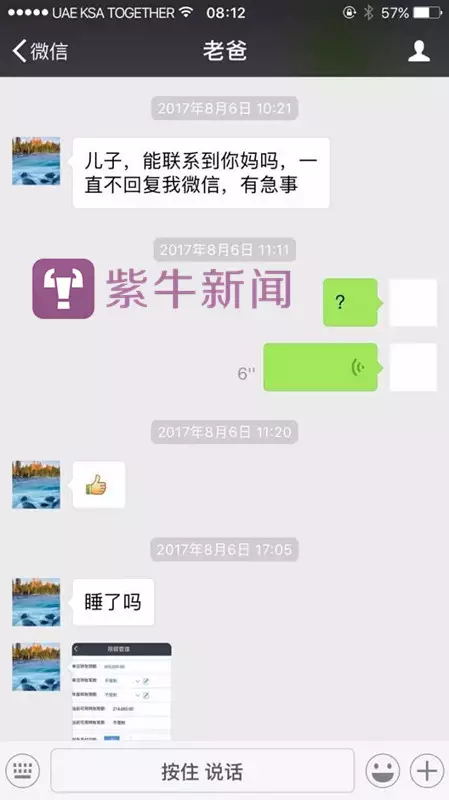 駱先生告訴紫牛新聞記者,父親於8月4日到達阿聯酋迪拜,這次旅程是受生意合夥人徐某之邀,前往葡萄牙考察項目,家人和徐某認識多年也都比較放心。6日晚他收到父親的微信消息,詢問如何調高支付寶的單次刷卡限額。“隨後我又接到父親微信上的消息,説護照在迪拜弄丟了,當地警方態度差、效率低不給辦,大使館也沒辦法。我告訴他丟護照的事情很常見,開出證明辦旅行證就可以回國了,不過他在微信裏一直稱沒法辦理,並且不能語音只能打字。”駱先生當時覺得有些蹊蹺,但是搜索了當地規定,確實有不能語音的説法,也就沒放在心上。而後來當他到了阿聯酋才知道,當地只有規定不能視頻或語音連線通話,並無不能發送語音的規定。