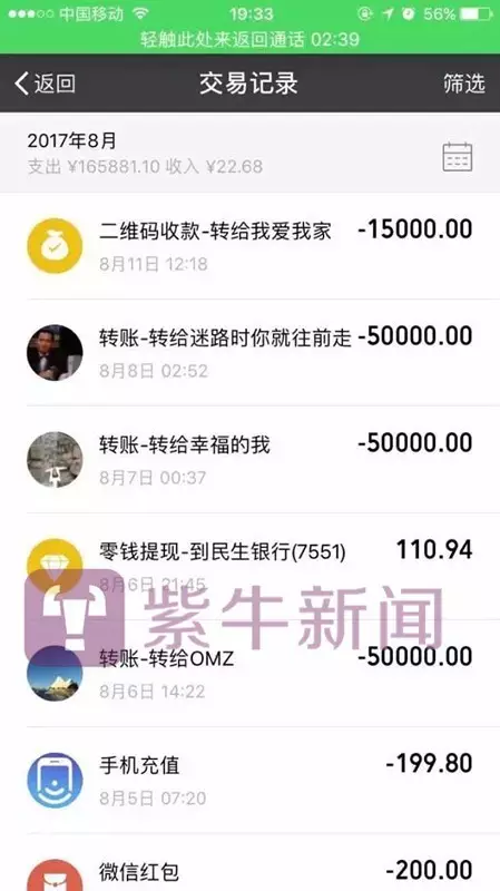 微信和卡里資金被轉到徐某澳洲賬户