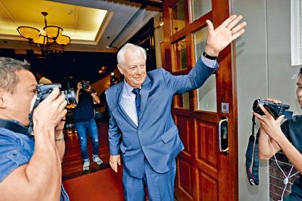【環球時報駐香港特約記者 楊偉民】在反對派麻煩不斷、人人喊打的低潮時刻,“末代港督”彭定康借宣傳新書之機入港,再對香港事務指手畫腳。他在午餐會上繼續“指指點點”,並當着一堆“舊電池”的面,點名稱讚正在監獄服刑的非法“佔中”頭目黃之鋒是難得的“優秀年輕人”,被認為是“欽點”接班人。