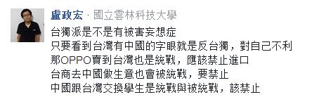 島內網友大為不滿,指出“聽音樂會就會被‘統戰’?”還有台灣學生批判道,“台獨”是不是有被害妄想症,只要看到台灣有“中國”字眼就認為其反“台獨”,對自己不利。學生進一步諷刺,那OPPO賣到台灣也是“統戰”,應該禁止,台商去大陸做生意,甚至兩岸的交換學生活動,也應該被禁止。