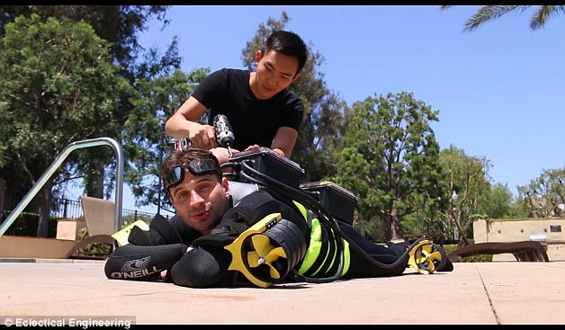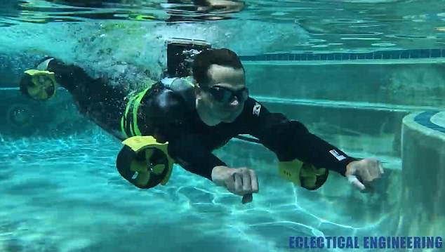 以前曾經爆料法國一位科技達人Franky 向世界展示了第一個水上推進的單人飛行器 Flyboard,它通過推力可以支撐其一個人的重量,讓人們在水上空中進行飛行。根據《每日郵報》消息,這一次,有 DIY 達人設計了另外一種推力器 Jetpack,與 Flyboard 不同的是,Jetpack 適合在水底推進,有了它的幫助,人們在水裏的遊速可以超過 10 公里/小時。