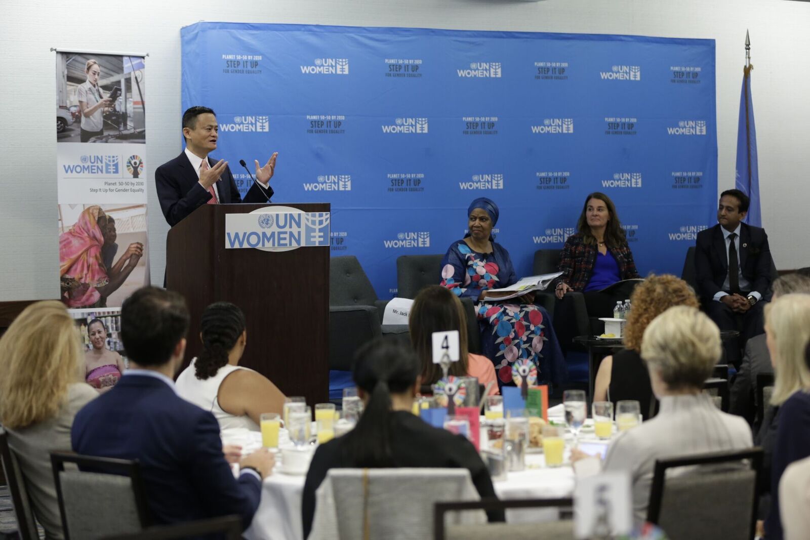 兩年前,馬雲作為世界婦女峯會“女性賦權全球企業家領袖會議”的聯合主席,與多位全球商業組織領袖、慈善基金宣佈,將投入數百萬美元致力於全球女性平等事業。當時在聯合國發言,馬雲曾説:“到2030年,我希望那時的聯合國秘書長是一位女性。”