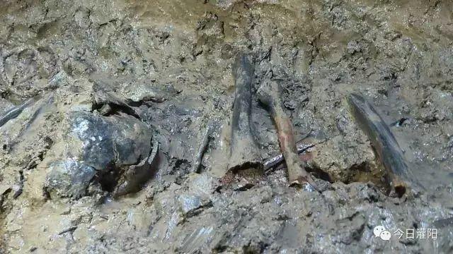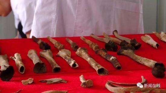9月16日,灌陽縣將井下發掘出的骸骨運送出井,一些骸骨有的被棕繩捆綁,同時,還從井裏清理出局部腐爛的黑色打結棕繩,和被棕繩捆綁後留有清晰痕跡的墜石等。