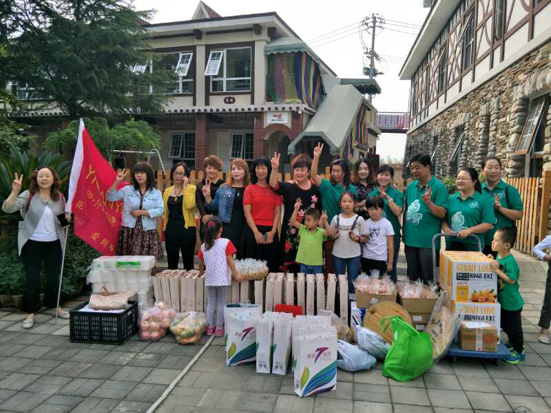 伊仟葉花語攜手多家愛心媒體、愛心企業、愛心人士到達愛百福盲童福利院。將手工鮮花月餅、水果、玩具、生活用品等愛心物品送到福利院老師手裏,由老師安排發放加餐時間,伊仟葉花語創始人伊娟和工作人員為盲童寶貝們發送鮮花月餅。