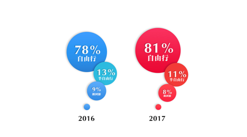 年輕羣體的愛自由,還表現在目的地進階上。人們對旅行目的地的選擇,一般從國內到境外,從大眾目的地到小眾目的地。但生猛的年輕羣體進階更明顯,去過更多國家的越來越多,2017年去過6個以上國家的,比前一年增長了7%。