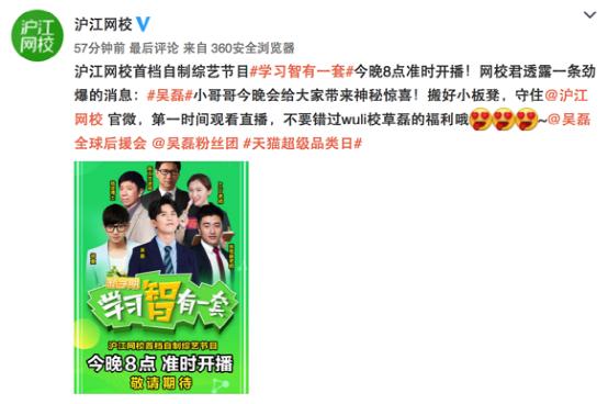 當晚8點,滬江網校給1330.3萬名網友獻上以“新學期學習智有一套”為主題的首檔自制綜藝節目,通過“明星+名師+專家”的直播互動方式帶來平台上以Uni智能課程系列為主的在線課程,直播最高在線人數達到977300人,創下滬江網校天貓直播收視新紀錄。最終滬江網校天貓旗艦店完成日營收額同比去年增長360%,同比雙11增長154%,近600名用户報名了Uni智能課程系列,其中新概念、雅思等智能課程備受學員追捧,活動首日交易數據就已領跑新東方在線、51talk、英語流利説等其它一線品牌,提前開啓了教育品類雙11的學習盛宴。