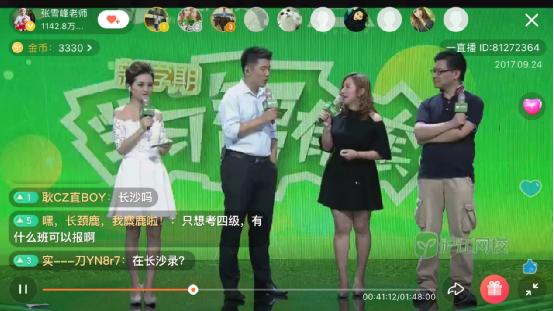在阿爾法機器人集體舞蹈了一曲《moves like a jagger》,以及滬江網校代言人吳磊以vcr視頻形式給線上網友打call後,作為登陸過《火星情報局》、橫跨教育與娛樂兩屆的“考研名嘴”張雪峯現身,在節目一出場就包袱不斷,主動爆料自己初中學英語的囧事,幽默之餘不忘分享了考研英語的幾個小竅門。面對網友對他本人頻上綜藝節目的質疑,張雪峯老師直言:“我永遠是個老師,不是藝人。”他認為,老師也可用綜藝、有趣的方式來吸引學生,進而吸引學生關注學習、關注教育。張老師的風趣坦率引得網友們頻頻刷彈幕直呼:“張老師太可愛了”、“這種直播,真的不錯”。