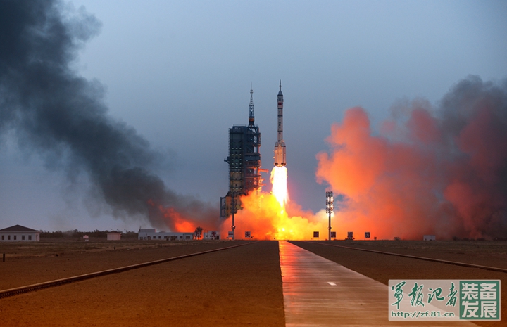 2016年10月17日7時30分,搭載神舟十一號載人飛船的長征二號F遙11運載火箭,在酒泉衞星發射中心點火發射。王泗江 攝