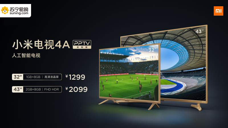 近日,蘇寧聯合小米打造的“929超級品牌日”正式啓動。除了定金翻倍、爆款直降等促銷活動外,還發布了首台小米·PPTV定製版電視,並宣稱“為發燒友定製的高配好電視”。該定製款分為32英寸和43英寸兩款,售價分別為1299元和2099元,9月29日0點限量開搶。