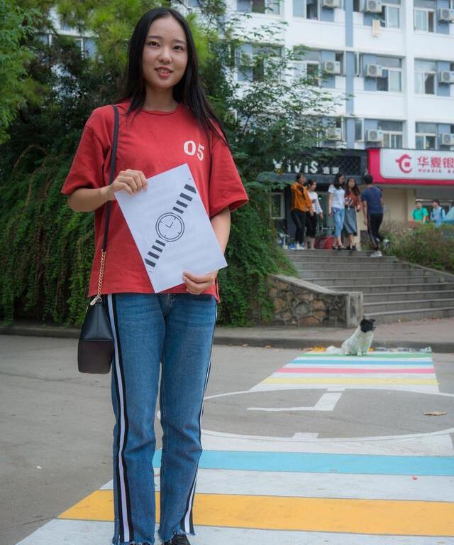 記者看到,這條“手錶”斑馬線6米多長,兩邊“錶帶”由紅、白、藍、黃四種顏色搭配而成,吸引了不少過往師生駐足圍觀。該校IDEA精英匯社團負責人何雨露介紹,由於這條路是學生宿舍通向教學樓的必經之路,平時人、車流量較大,考慮到師生的出行安全,他們在兩天前決定手繪一條創意斑馬線。