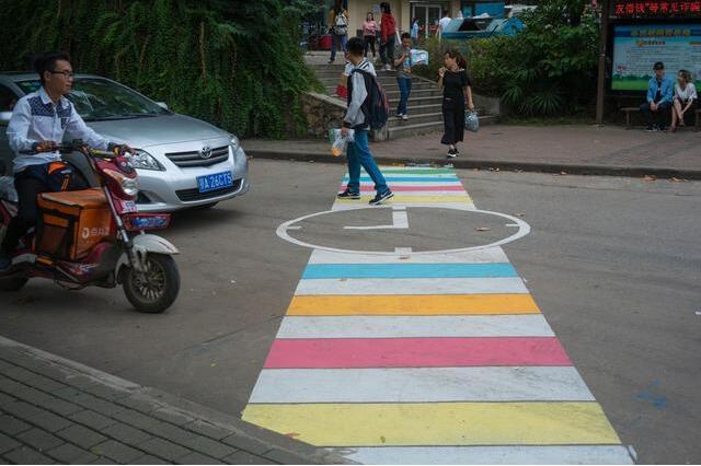 宿舍樓下車流量大 武漢一高校學生手繪斑馬線