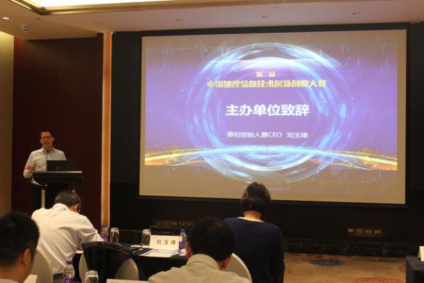 泰伯創始人兼CEO劉玉璋為本次大會做致辭。他表示,希望通過本次泰伯網和國家測繪局、企業之間的合作,以大賽為平台將地理信息行業內的優秀項目聚集起來,不遺餘力地共同促進地理信息產業事業發展。
