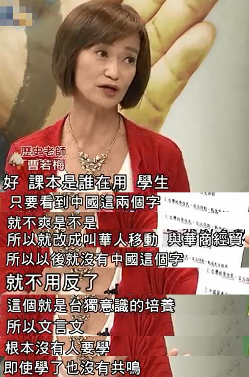 台灣的歷史老師曹若梅則針對新課綱中的高中歷史課程“重點思路”發表感慨:這根本就是“台獨”意識的培養!