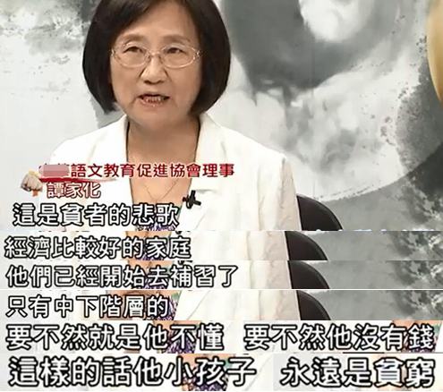台灣“語文教育促進協會理事”譚家化就表示:這是貧者的悲歌!