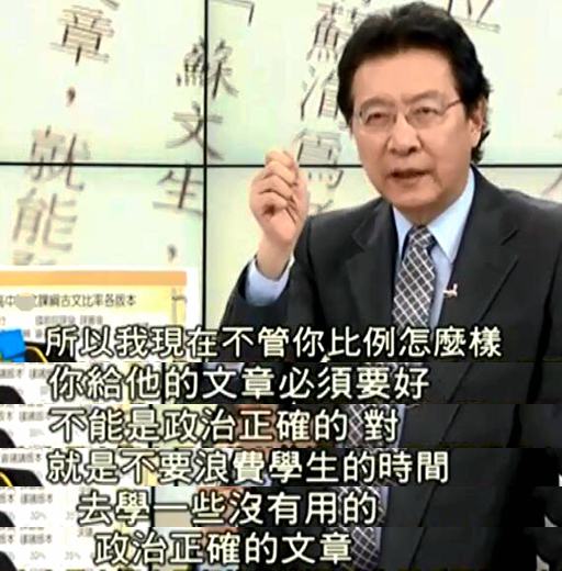 對此,有台媒人士也向蔡當局喊話:不管最後定的比例怎樣,你給學生的文章必須要好,而不是所謂的是“政治正確”的文章!