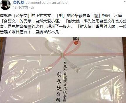 比如前不久,台灣“駐日代表”謝長廷在日本參加活動時,贈禮竟將謝長廷名字錯成“射長廷”,引發了島內媒體的熱議,連台灣自由作家洛杉基都酸其説:這是“台語文”的正式官文,“射大使”果然不凡!