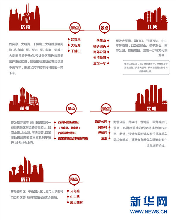 “魔方”預測,部分重點城市騎行熱門區域基本為傳統商圈及經典景區: