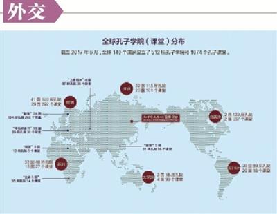 截至2017年6月,全球140個國家設立了512所孔子學院和1074個孔子課堂。