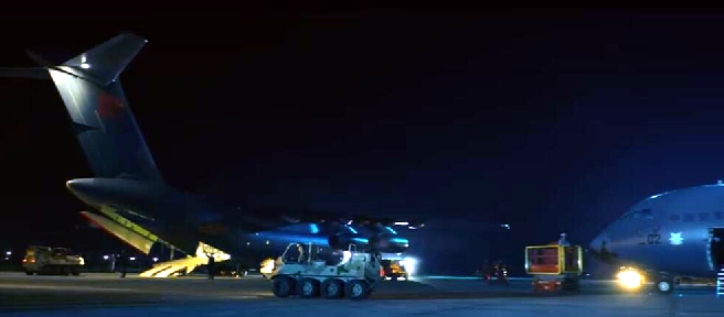 要在一次救援行動中儘量展示中國空軍的體系作戰能力,編劇的確下了不少功夫。由於叛軍控制了邊境地區的雷達系統,並掌握了機動部署的薩姆-6防空導彈系統,“霸天狼”想要不驚動敵人的情況下搶先救出人質並摧毀導彈發射井,必須依靠空降分隊的滲透。影片中,首先起飛空警-500遠距離掌握戰區情況,然後運-20大型運輸機從“霸天狼”的秘密基地出發,將攜帶全地形車的空降分隊空投至叛軍警戒範圍的邊緣地區,並利用夜幕掩護向叛軍基地快速滲透。隨後滿載對地攻擊彈藥的兩架殲-10C戰鬥機起飛,憑藉山區地形掩護,低空躲過叛軍雷達搜索,在空降分隊解救人質的同時,摧毀了防空導彈,為後續救援直升機的跟進和撤退打開通道。