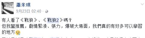 海外君特意去了台灣學生常聚集的臉書平台上,看了看他們的評論,發現竟然有許多台灣網友也看過《戰狼2》。有台灣網友表示,“熱血看完《戰狼2》,我要保衞國家。”也有網友語重心長地説“一定有很多台灣人會有感觸”。