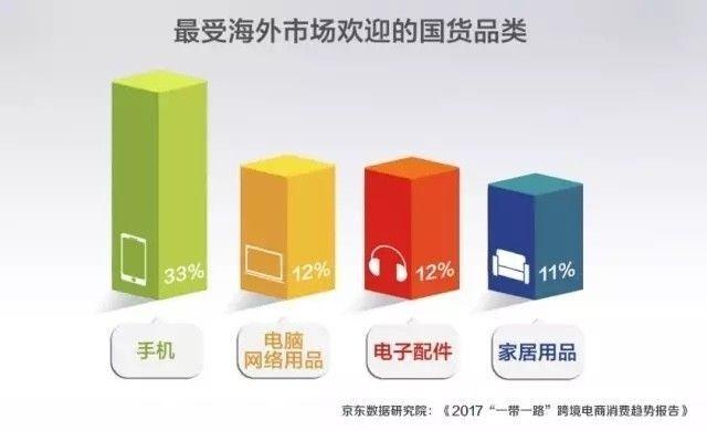 近兩年,智能產品、汽車配件、運動户外、美容健康是海外銷售佔比增長最為亮眼的品類。2017年1月至4月,消費額同比去年增速最快的13個國家中,有7個“一帶一路”沿線國家,消費額同比平均增速超過10倍。