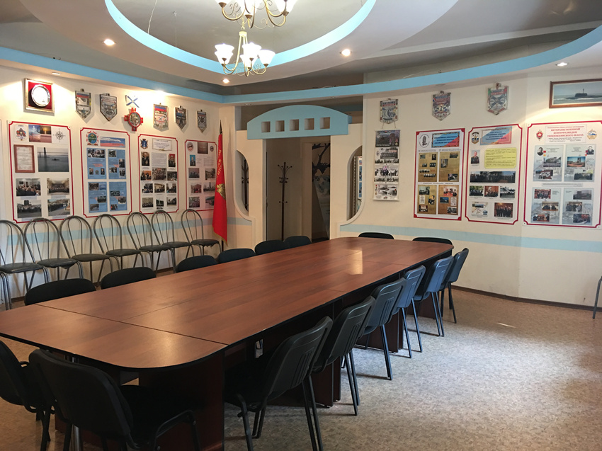 走進老兵之家,發現與毫不起眼的門臉相比,它的內部“豪華”很多,會議室、主席辦公室、會客室一應俱全。會議室四周的牆壁上貼滿了俄羅斯各個老兵組織的介紹海報和徽章,太平洋艦隊老兵委員會的海報也在其中。