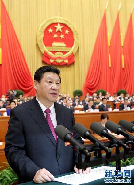 2013年3月17日,第十二屆全國人民代表大會第一次會議在北京人民大會堂舉行閉幕會。習近平發表重要講話。(圖片來源:新華社)