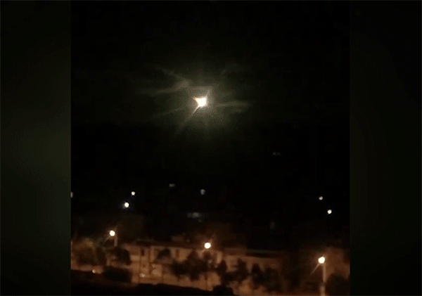 記者從當地百姓拍攝的一段時長9秒的視頻看到,夜空突然出現一顆明亮的點,稍縱即逝後又再度出現,並突然照亮夜空。