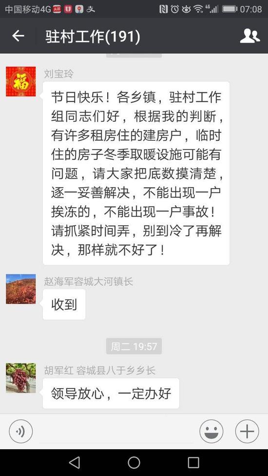 實際上,早在幾天前,一些臨時租房户過冬取暖的問題,就已經提上新區的議事日程。在一個新區和縣鄉村幹部工作羣裏,新區就要求基層把底數摸清楚,並逐一妥善解決,不能出現一户挨凍的!