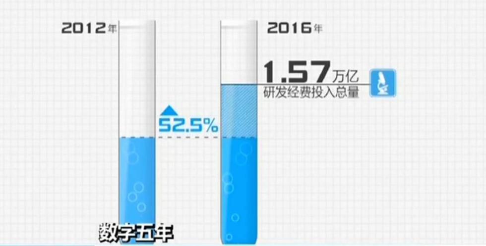 這是2016年我國研發經費投入總量,與2012年相比,增加了52.5%,超過了日本,成為僅次於美國的世界第二大研發經費投入國家。
