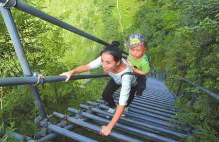 從2016年8月開始,州、縣兩級財政共投入100多萬元,將“懸崖村”原來的藤梯換成鋼梯。當年11月,鋼梯建成投入使用。