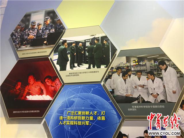 大力推進科技興軍,努力提升科技對戰鬥力增長的貢獻率,產生了一大批標誌性成果,鍛造了一大批科技創新領軍人物和團隊。排在首位的便是展覽內展出的“八一勳章”獲得者馬偉明帶領的電力集成創新團隊。面對艦船綜合電力系統、電磁發射技術等世界公認的技術難題,他們堅持“要做就做最前沿的”,敢為人先、奮力攻關,取得一項又一項原創性重大創新成果,在與西方國家科研創新的賽道上“彎道超車”,實現了從“跟跑者”“並跑者”到“領跑者”的角色轉變。