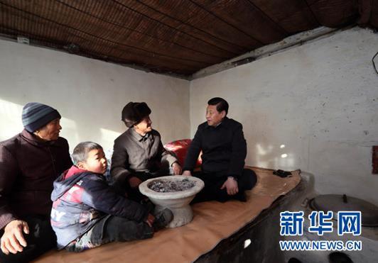 2012年12月29日至30日,習近平在河北省阜平縣看望慰問困難羣眾。這是習近平在龍泉關鎮駱駝灣村看望唐榮斌老人一家。(圖片來源:新華社)