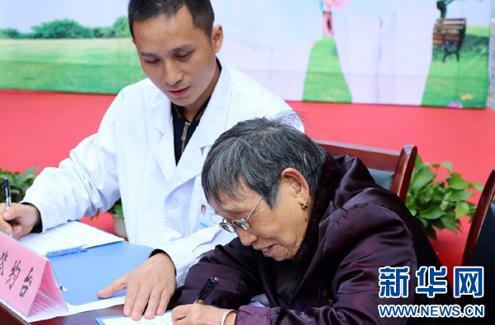 2016年11月11日,重慶沙坪壩區新橋社區衞生服務中心集中舉辦“家庭醫生”服務簽約儀式。圖為居民代表簽約家庭醫生現場。(圖片來源:新華網)