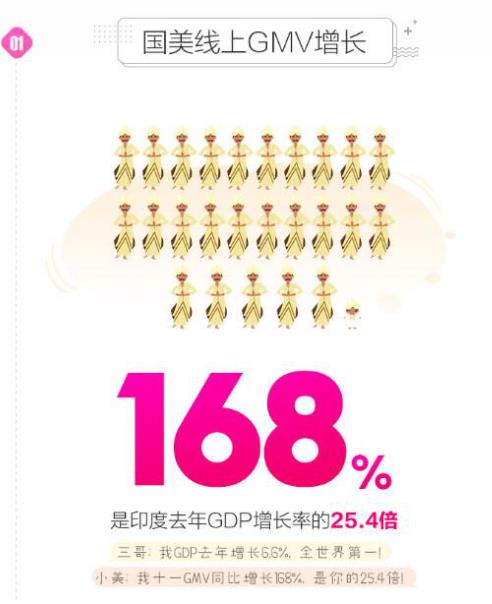新零售模式,目前的探索階段,真正能很好結合線上線下,並充分挖掘社交電商魅力的模式中,國美互聯網應該是相對成熟度最高的一種。藉助這一模式,配合“歡搶十一” 家電套購返現、跨店3免1、價保雙十一、15天無理由退貨等玩法和服務,以及眾多秒殺和爆款產品等促銷活動,國美在這一次國慶假期,實現了交易額同比增長168%,這個數字是印度2016年GDP增長率的25.4倍!這一喜人的數據也意味着國美推出的新零售模式或將引領新一輪的行業熱潮。