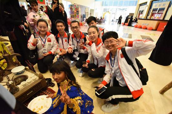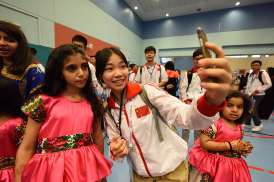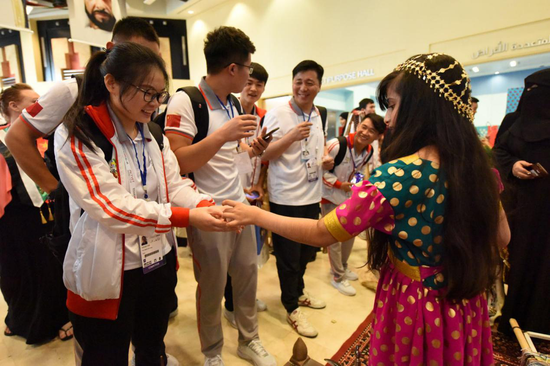 “這份情誼讓我們感動。”來自廣東深圳技師學院的中國選手一邊拿出從中國帶來的熊貓徽章贈送給學校的同學,一邊拿起手機和阿拉伯的小朋友們合影自拍。