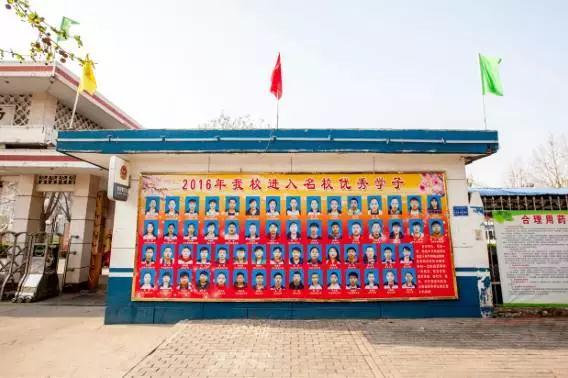 2017年4月3日,河北省保定市“雄安新區”雄縣中學門口兩側的牆上,展示着該校2016年高考優秀學子的大幅照片。圖/CFP