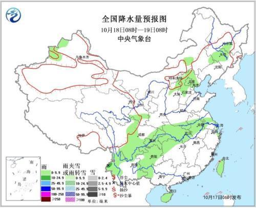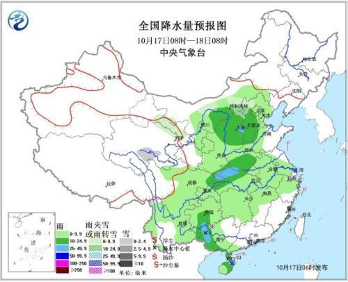 中新網10月17日電 據中央氣象台網站消息,受高空槽和切變線影響, 17日,西北地區東部、華北、江漢、黃淮西部等地有小到中雨,其中,湖北北部、河南西南部的部分地區有大雨。
