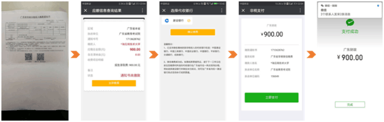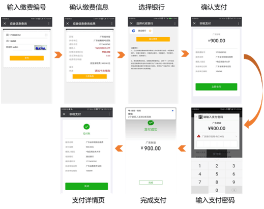 基於微信支付基本功能,微信非税繳費按照財政非税收入管理規定搭建了一套產品方案。此後,納入非税系統的省級所有非税收入項目,如考試類收費(認證考試類報名費用、資格考試類報名費用等)、罰沒收入(交通罰款、罰金、法院罰沒收入等)、證件類費用(出入境證件費用、户政證件費用等)都可以通過公眾號“廣東財政”或掃描繳款通知單二維碼進行支付和辦理,省去了用户線下繳費的麻煩。