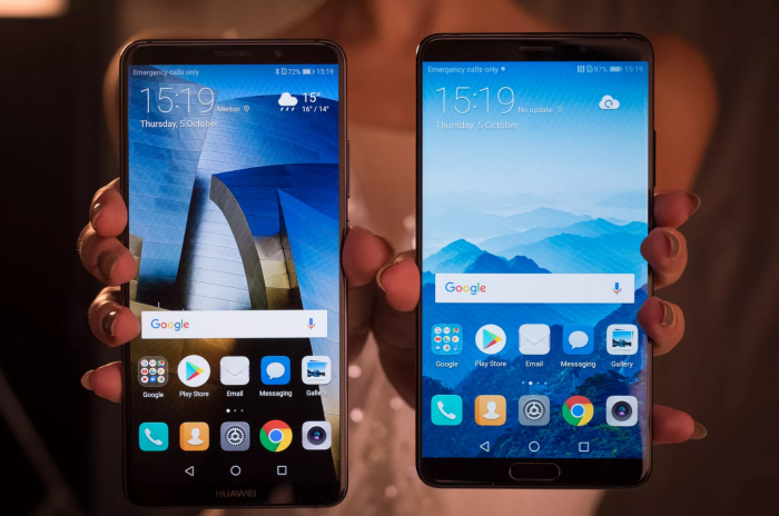 從整體外形來看,與比例為18:9的Mate 10 Pro相比,Mate 10的寬高比為16:9。儘管在分辨率和顯示類型上有所區分,但兩款手機皆配備“全屏”顯示屏,在陽光下具有豐富多彩的色彩。