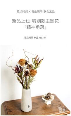 而這一次,夢想改造家青山周平與國內知名生活方式品牌“花點時間”碰撞出了創意的火花。青山周平親自設計的“精神角落”花束+“小光芒”花瓶禮盒套裝全新上線,這款作品結合了日式美學和日常美學,“精神角落”花束精選高端進口暖色調花材如柳龍、松果、山龍眼、和木百合等,鮮花與乾花混合送達用户手中。所有花材均可長期保留,全部變成乾花之後,仍有時間的印記和陽光的味道。