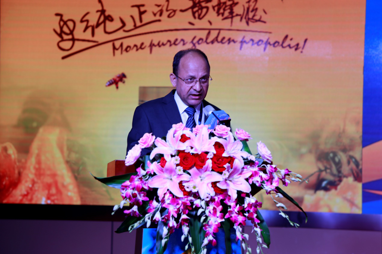 尼泊爾駐華大使館公使吉米瑞在致詞時,首先代表與會的外交官向論壇的舉行表示祝賀!他説,對於本次論壇的目標印象深刻。這是通過不同層面的技術交流和研討,以便推進“一帶一路”建設和國際經貿合作,特別是在蜂業領域的合作。中國富有遠見的領導人習近平提出了“一帶一路”倡議,這為國際合作提供了大量的機會。我們可以有多重路徑進行合作。在蜂業領域,中國與尼泊爾、中國與其它國家可以開展廣泛的合作。