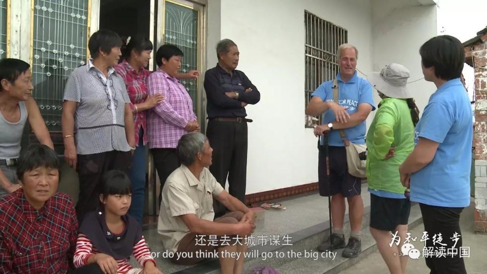 我開始感到很興奮。我覺得我發現了新大陸。他們告訴我他們不是很確定。但是村裏有個老人會知道。老人已經95歲了,在這裏住了一輩子,除了1943年的時候,他外出兩年去解放當時在日本佔領下的濟南,他一輩子都住在這裏。他們就到田間去把他領過來。他坐在樹下,他説這個村子以前沒有外國人來過。這個外國人是第一個。