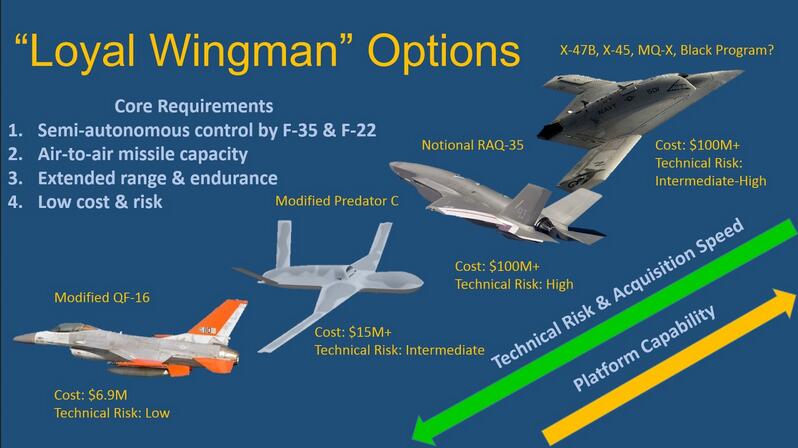 這種“生死搭檔”的組合就是美國空軍重點發展的“忠誠僚機”項目,希望充分利用第四代機的機動性好、火力充足的優勢,以及第五代機作戰網絡節點的角色,大幅增強二者在空戰中的致命殺傷能力。