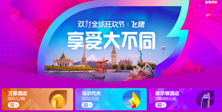 “世界那麼大,趕緊去看看吧”,伴隨着天貓雙11全球狂歡節的開啓,10月20日凌晨,阿里巴巴旗下旅行品牌飛豬的全球遊產品也正式接受預訂。飛豬方面透露,0點-1點預訂呈現出了井噴式增長,當各種好貨砸向愛玩、會玩的“剁腳黨”時,旅行圈沸騰了。