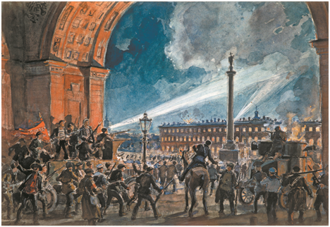 到1917年秋天,列寧已經比狡猾軟弱的亞歷山大·克倫斯基更受歡迎。克倫斯基在3月至10月期間任俄羅斯臨時政府首腦,軍方曾試圖阻止布爾什維克革命並建立右翼獨裁統治(科爾尼洛夫事件),但最終遭遇失敗。1917年11月7日,布爾什維克黨人率領民眾佔領彼得格勒冬宮,推翻了臨時政府。