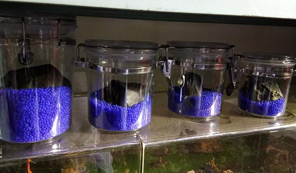 撿回來的隕石,趙志強把它們放在密封的瓶子裏,再墊上一層藍色球粒乾燥劑,以防生鏽。