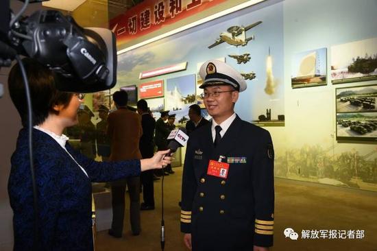來自海軍的黨的十九大代表魯軍勇接受採訪。記者馮凱旋攝來自海軍的黨的十九大代表魯軍勇接受採訪。記者馮凱旋攝