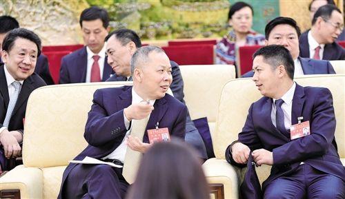 中央企業系統(在京)代表團舉行會議,討論黨的十九大報告。陳奮健代表(右二)、白芝勇代表(右一)就不斷增強我國經濟創新力和競爭力等內容展開熱烈討論。記者 李景錄攝